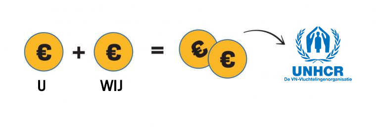 Geeft u €5, dan geeft ELECTRO DEPOT ook €5 en ontvangt het UNHCR €10.