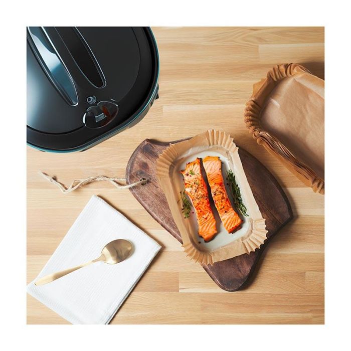 | Caractéristiques complémentaires | Lot de 50 feuilles de papier cuisson rectangulaires 20.5x14 cmIdéal pour cuisson Airfryer |