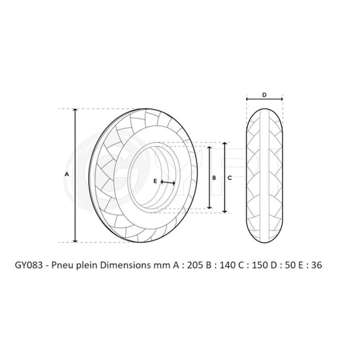 Pneu plein GYPI 8,5" 34/36mm alvéolé