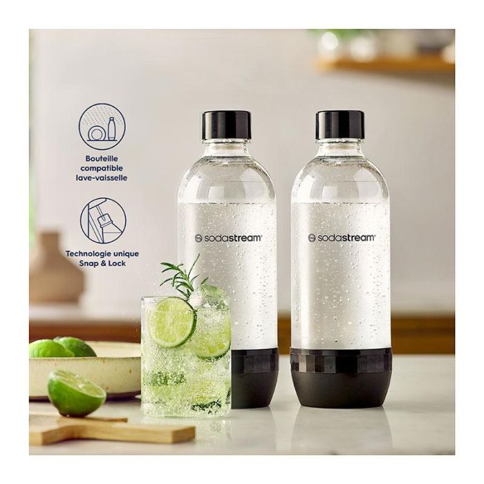 | Caractéristiques complémentaires | Des bouteilles pour conserver vos bulles toute la journée ! Nos bouteilles (1L) compatibles lave-vaisselle sont garanties sans Bisphénol A (BPA) et vendues en lot de 2 pour réaliser toutes vos boissons ! - Pack 2 bouteilles Classique grand modèle 1L sans BPA* compatibles lave-vaisselle - 0,84L jusqu’à la ligne de remplissage - 1 bouchon avec un joint permettant de conserver plus longtemps sa boisson pétillante - Bouteille réutilisable pendant 3 ans (voir date limite d’utilisation au dos de la bouteille). Véritable alternative aux bouteilles en plastique à usage unique et répondant aux nouvelles habitudes de consommation |