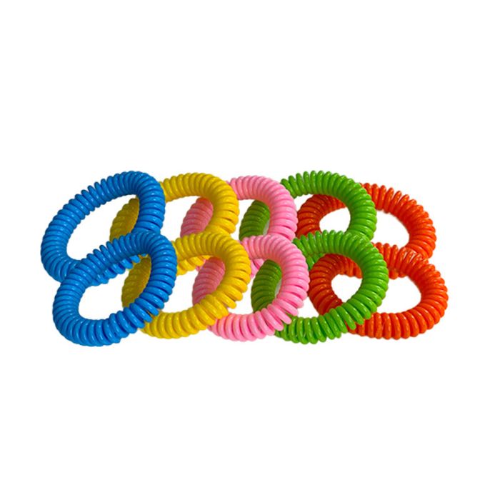 | Caractéristiques complémentaires | Lot de 10 bracelets spirale citronnelle10 BRACELETS CITRONNELLEEFFICACITE REDOUTABLEREPOUSSE LES MOUSTIQUES- EFFICACITÉ LONGUE DURÉE - RÉSISTE A L’EAU- IDÉAL POUR LES VACANCES LE CAMPING LA PÊCHE ET AUTRESACTIVITÉS EXTÉRIEURES- UTILISATION INTÉRIEUR / EXTÉRIEUR- COLORIS ASSORTIS |