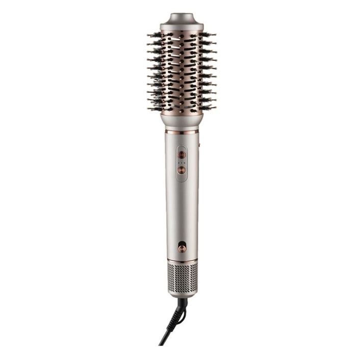 | Caractéristiques complémentaires | Pour tous les types de cheveux. Un effet conda en un simple geste, sans dommages thermiques.Réalisez tous vos types de coiffure grâce à cette brosse 4en1 pour sécher, lisser, coiffer et boucler.* Moteur digital : performances exceptionnelles, légèreté et longue durée de vie* 5 accessoires- concentrateur : pr-sèche et prépare les cheveux- diffuseur plat : pré-sèche et prépare les cheveux- brosse volumisante : brushing sur toute la longueur des cheveux- rouleaux bouclants : boucles rebondies* Interrupteur marche/arrêt* 3 vitesses / 3 réglages de chaleur* Fonction ionique, anti-frisottis |