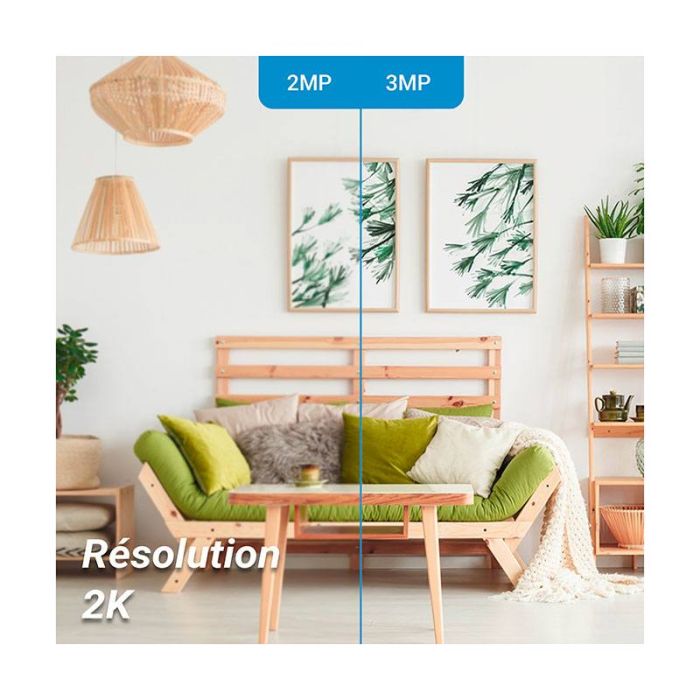 | Caractéristiques complémentaires | Résolution 2KVision panoramique 360°Vision nocturne IR jusqu'à 10mDétection forme humaineMode sommeilPossibilité d'insérer une carte micro SD (jusqu'à 256Go, vendu séparemment sur notre site) pour avoir plus de stockage localApplication EZVIZ |
