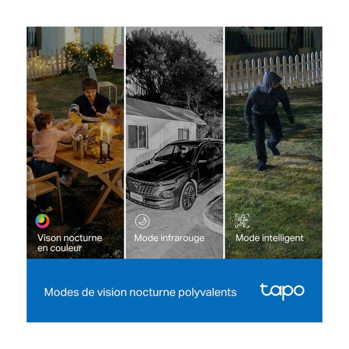 | Caractéristiques complémentaires | La caméra TAPO C246 est équipée de deux objectifs 2K 3MP, un objectif fixe avec un grand angle de 125° + un objectif motorisé avec une rotation de 360° qui vous permettent de surveiller deux zones simultanément. - Suivi intelligent synchronisé - Vision nocturne couleur avec projecteurs- Zones de confidentialité personnalisables- Mise au point intelligente en un clic (sélectionnez simplement une zone dans la vue grand angle et la caméra fera instantanément la mise au point sur ce point)- Conception compacte pour installation multiple méthodes (Il peut être placé debout ou à l'envers, sur un bureau, accroché à un mur, monté au plafond ou maintenu par une tige)- Détéction intelligente par IA gratuite (Identifie les personnes, les animaux domestiques, les véhicules et les pleurs de bébé tout en vous envoyant des alertes uniquement lorsque cela est vraiment nécessaire)- Stockage local et cloud (Enregistrez les vidéos sur une carte microSD jusqu'à 512 Go non fournie mais vendue sur ce site ou en utilisant les services de stockage cloud Tapo Care)- Microphone et haut-parleur intégrés- Volume de sirène 99 dB- Résistant aux intempéries IP65 |