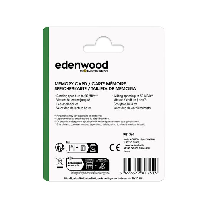Carte Micro SD EDENWOOD 128 Go + adaptateur