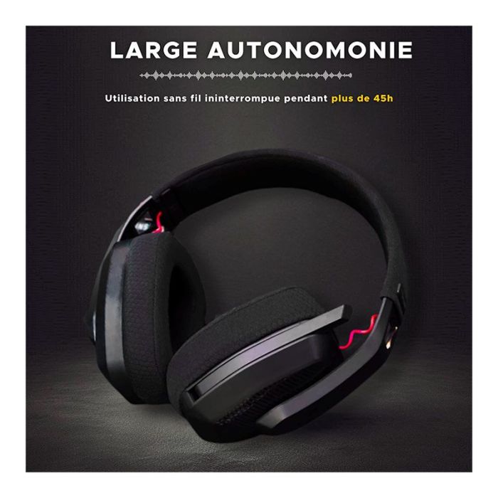 | Caractéristiques complémentaires | Découvrez le nouveau casque gaming sans fil ultra-léger de THE G-LAB : le Korp Platinium !Avec son design sobre et épuré, il s’adapte aussi bien à vos sessions de jeu qu’à vos déplacements.Grâce à sa double connectivité 2.4 GHz + Bluetooth, profitez d’une utilisation polyvalente, que ce soit pour le gaming ou le travail.Son microphone rétractable assure une captation claire et précise de votre voix en pleine action.Le Korp Platinium : l’alliance parfaite entre légèreté, performance et liberté !Son : StéréoTaille des haut-parleurs : 40 mmTexture des coussinets : TissuConnectique : 2.4 GHz + BluetoothType de microphone : RétractableBoutons multimédias : Oui, sur le casqueLogiciel de personnalisation : Non, plug and playRétroéclairage : NonCompatibilité : Windows, Mac, PS, Android, iOSTaille du câble : 2 mPoids : 200 gAutonomie :- 13 h avec RGB (2.4 GHz)- 25 h sans RGB (2.4 GHz)- 16 h sans RGB (Bluetooth)- 45 h avec RGB (Bluetooth)Temps de recharge : 3 h |