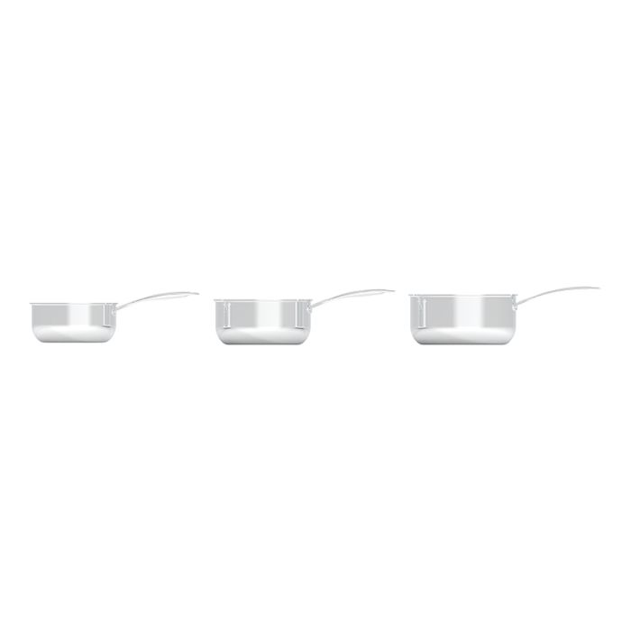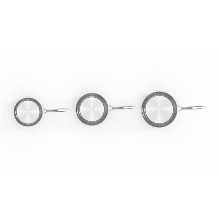 | Caractéristiques complémentaires | Lot de 3 casseroles inox triply (inox / aluminium / inox) 16, 18 et 20 cmMontée rapide et homogène en température.Pour un bon entretien de votre produit, après usage, mettre un peu d'eau dans le fond de la poêle ou casserole avec quelques gouttes de liquide vaisselle et/ou vinaigre blanc. Laisser agir quelques minutes puis laver votre produit.Le passage au lave vaisselle est possible mais nous vous conseillons le lavage à la main pour un meilleur entretien et une meilleure durabilité de votre produit |