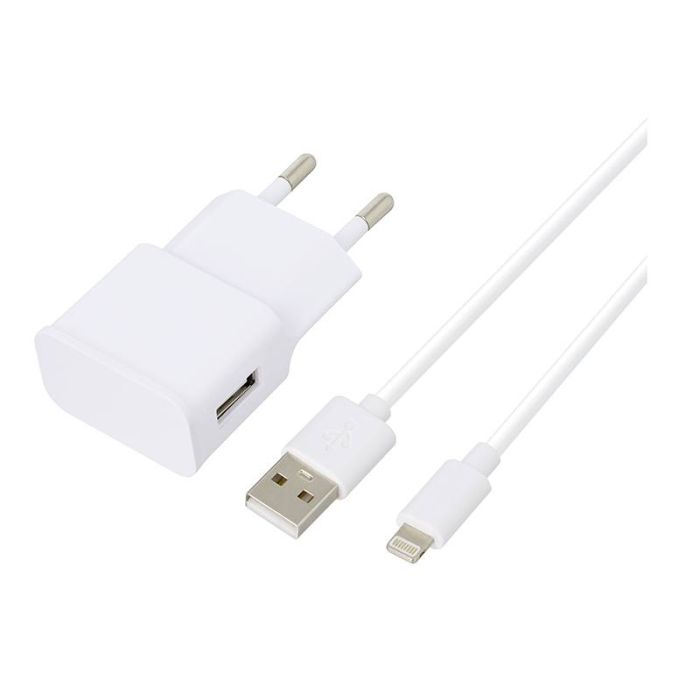chargeur secteur high one 2.4AA BLANC + CABLE LIGHTNING 1M