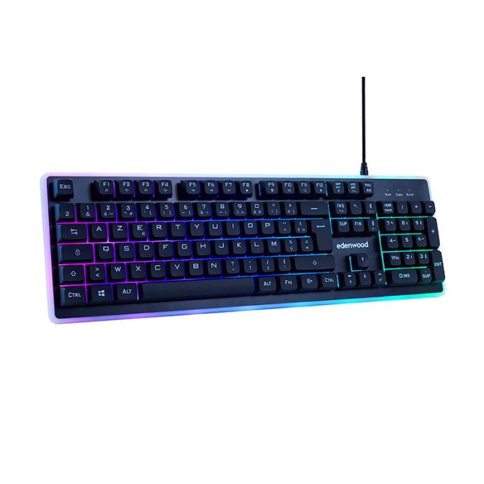 | Caractéristiques complémentaires | Clavier Gamer EDENWOOD – 100% Membrane RGBAméliorez votre setup gaming avec le clavier gamer EDENWOOD, conçu pour allier confort, réactivité et style.► Performance et confort► 100% membrane réactive et silencieuse pour une frappe fluide.► Anti-ghosting 19 touches pour des combos sans erreur.► 12 raccourcis multimédias + 6 dédiés pour un accès rapide à vos fonctions.► Windows Lock pour éviter toute interruption en jeu.► Design et connectivité► Rétroéclairage RGB personnalisable pour un look gaming immersif.► Format 105 touches, filaire Plug & Play, câble de 1,8 m.► Poids 505 g, solide et stable sur votre bureau.Parfait pour les joueurs PC recherchant précision, confort et installation immédiate. |