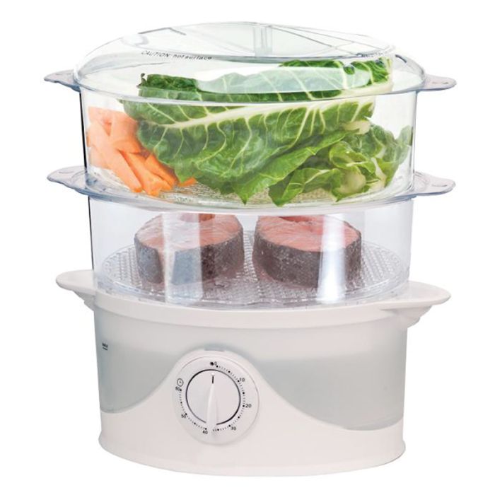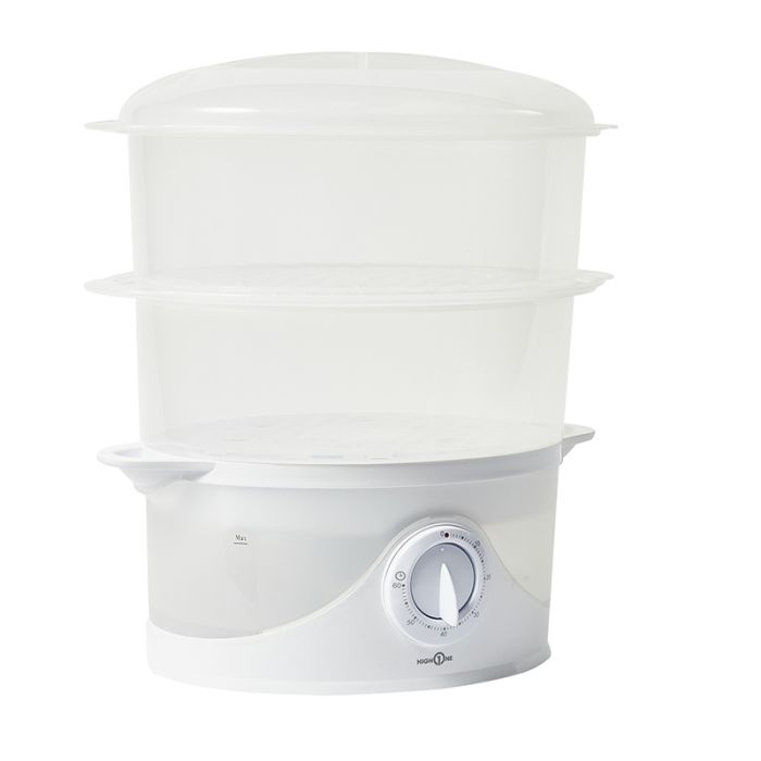 | Caractéristiques complémentaires | Le cuiseur vapeur HIGH ONE est équipé de 2 bols pour la cuisson vapeur en plastique. Il vous permet de conserver toutes les saveurs de vos aliments et de bénéficier d'une cuisson saine, sans ajout de matières grasses. Les 2 bols de cuisson s'empilent très facilement et vous permettent de bénéficier d'un volume de 6 litres pour la cuisson de vos légumes, céréales, viandes ou poissons. Équipé d'une minuterie, il vous permettra de réussir à coups sûrs toutes vos préparations ! |