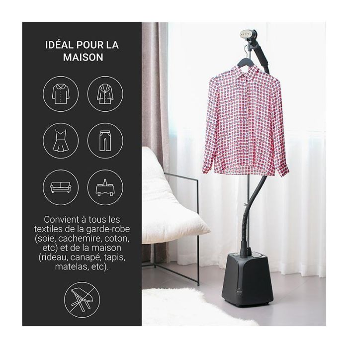 Le débit vapeur de 40g/min offre la quantité de vapeur idéale pour éliminer les faux plis.1800 Watts