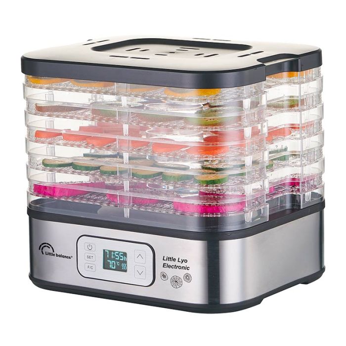 | Caractéristiques complémentaires | Déshydratez facilement les fruits, les légumes, les champignons et les herbes. Déshydrateur électrique à ventilateur pour sécher les aliments naturellement. 5 sections démontables Plateaux de séchage faciles à laver Dispositif de protection contre la surchauffe Avec thermostat de 35 à 70C°, contrôle numérique Minuterie de 30 minutes à 99 heures |