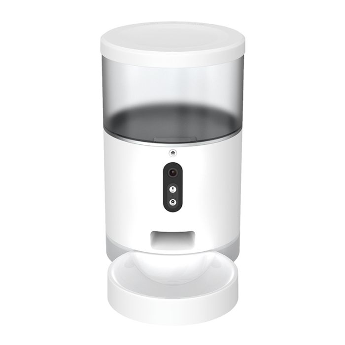 | Caractéristiques complémentaires | Distributeur automatique de croquettes avec caméra pour chats et petits chiens:- Planifiez les horaires d'alimentations et la tailles des portions à distance via l'application Smart Life. Gérez les distributions n'importe où avec connexion internet- Caméra FHD 1080P, grand angle avec vision nocturne et détection de mouvement. Microphone bidirectionnel et haut-parleur pour communiquer et interagir avec votre animal - Enregistrement vidéo en cas d'activité, sauvegarde sur carte microSD (non fournie, vendu sur ce site) ou sur cloud- Notifications en cas de faible niveau de croquettes, blocage de distribution, faible niveau des piles, etc. - Grande capacité de 4 litres, tailles de croquettes 2-10 mm- Quantité par portion de 10g, jusqu'à 10 portions par repas - Alimentation par câble USD (adaptateur et câble inclus)- Alimentation possible par piles (3xLR20, 1,5V, non incluses) en cas de panne de courant- Compatible avec les assistants vocaux Alexa et Google |