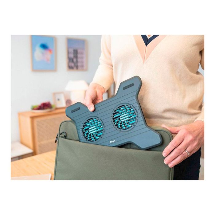 | Caractéristiques complémentaires | LES POINTS FORTS ► 2 ventilateurs silencieux alimentés par port USB pour un refroidissement efficace ► Protège votre ordinateur portable contre la surchauffe. Pour les ordinateurs portables jusqu’à 16" ► Modèle incliné pour une saisie confortable. Patins de protection en caoutchouc ► Léger et plat, se glisse dans votre pochette d'ordinateur portable ► Le câble et la fiche USB peuvent se ranger à l'intérieur du support |