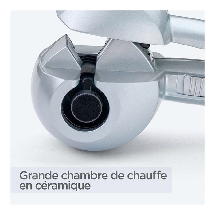 | Caractéristiques complémentaires | BOUCLEUR AUTOMATIQUE BaByliss CURL SECRET HYDRO FUSION (C1700E) Système Auto-Curl Breveté : Technologie 100% automatique pour créer des boucles sans effort et avec un résultat garanti Technologie Advanced Plasma : Système combinant des ions positifs et négatifs pour refermer les cuticules du cheveu, éliminer les frisottis et l'électricité statique Hydratation et Brillance : Aide les cheveux à conserver leur hydratation naturelle pour un résultat soyeux et une brillance éclatante Personnalisation du Style : Choix de 3 sens de rotation (gauche, droite ou alterné) et de 3 temps de pose (8, 10 et 12 secondes) pour varier la taille et le type de boucles Adapté à Tous les Cheveux : Propose 3 réglages de température (190°C, 210°C et 230°C) pour convenir à toutes les natures de cheveux Chambre de Chauffe en Céramique : Assure une diffusion homogène de la chaleur pour protéger la fibre capillaire Sécurité d'Utilisation : Équipé d'une fonction d'arrêt automatique pour une utilisation en toute sérénité Confort de Manipulation : Dispose d'un cordon rotatif d'une longueur de 2,8 mètres pour une grande liberté de mouvement Garantie Constructeur : L'appareil bénéficie d'une garantie de 3 ans |