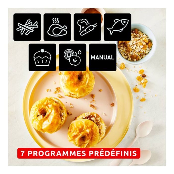 Pour une cuisson saine des aliments grâce à l’air chaud (sans matière grasse). Idéal pour toutes les recettes salées et sucrées.6 à 10 personnes