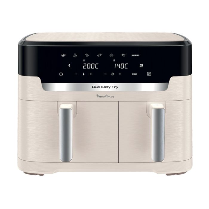 | Caractéristiques complémentaires | DES REPAS COMPLETS EN QUELQUES MINUTES : cuisinez deux ingrédients différents en même temps, pour un repas complet préparé dans un seul et même appareil grâce à cette double friteuse à air avec cuisson synchronisée LE AIR FRYER DUAL XXL : capacité 10,5 L avec un tiroir de 6.5 L pour les pièces volumineuses comme un rôti de 2 kg et un tiroir de 4 L pour les accompagnements comme des frites, idéale pour 6 à 10 personnes POLYVALENCE MAXIMALE : 6 programmes prédéfinis (frites, poulet, légumes, poisson, desserts, et contrôle manuel de la température de 40 à 200 °C, pour des résultats parfaits à chaque fois PLATS ÉQUILIBRÉS : frites croustillantes ou saumon parfaitement grillé, préparez une multitude de plats savoureux et équilibrés qui plairont à tout le monde RÉPARABILITÉ 15 ANS AU JUSTE PRIX : engagement de réparabilité 15 ans au juste prix grâce à notre réseau de 6 200 réparateurs dans le monde, pour contribuer à la protection de l’environnement et à la réduction des déchets GAIN DE TEMPS ET D'ÉNERGIE : consomme jusqu'à 70 % moins d'énergie et cuit jusqu'à plus 40 % plus rapidement qu'un four traditionnel (tests effectués en 2024 avec des frites surgelées) NETTOYAGE FACILE : le panier de cuisson antiadhésif et les grilles sont compatibles lave-vaisselle pour un nettoyage sans effort APPLICATION MY MOULINEX : avec l'application My Moulinex, découvrez des idées de recettes en fonction de vos goûts, du temps ou des ingrédients que vous avez, créez votre liste de course, planifiez vos repas et bien plus ! |