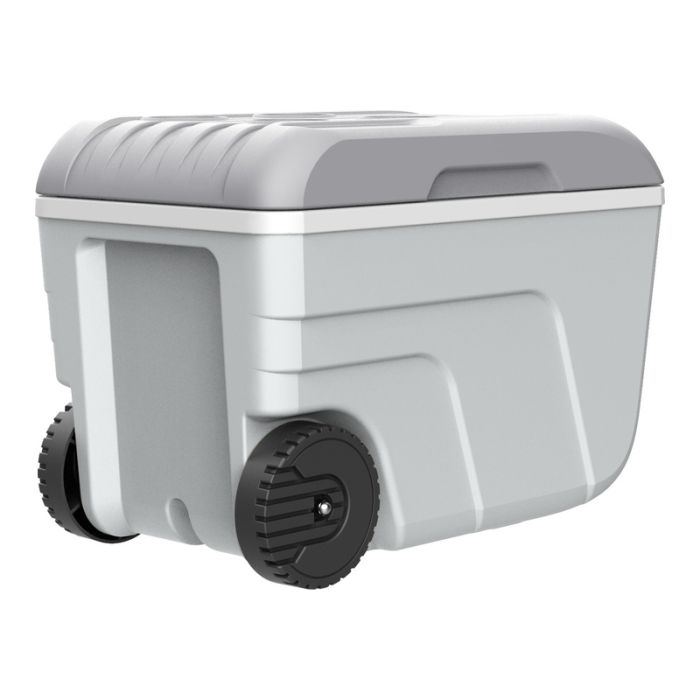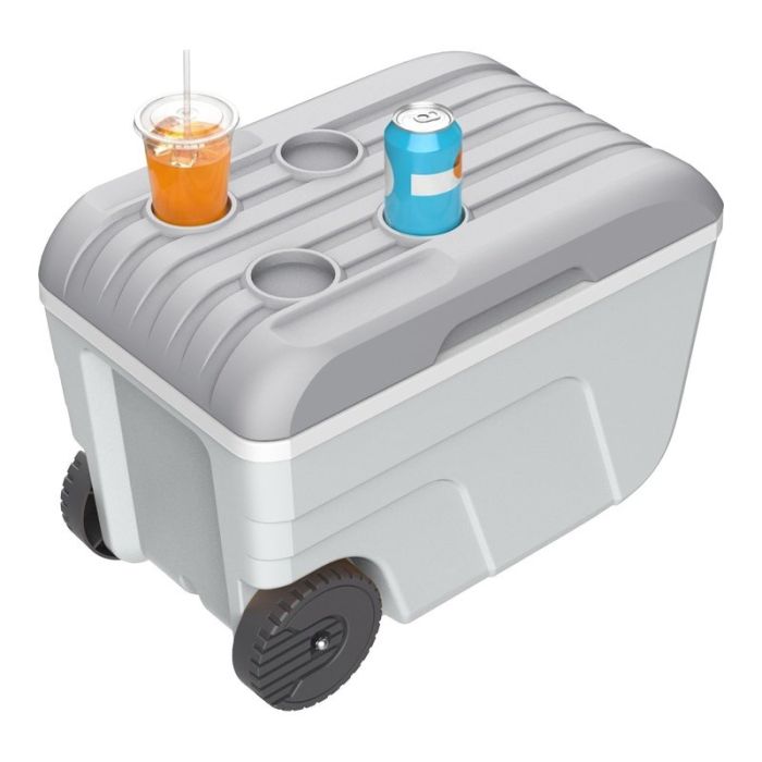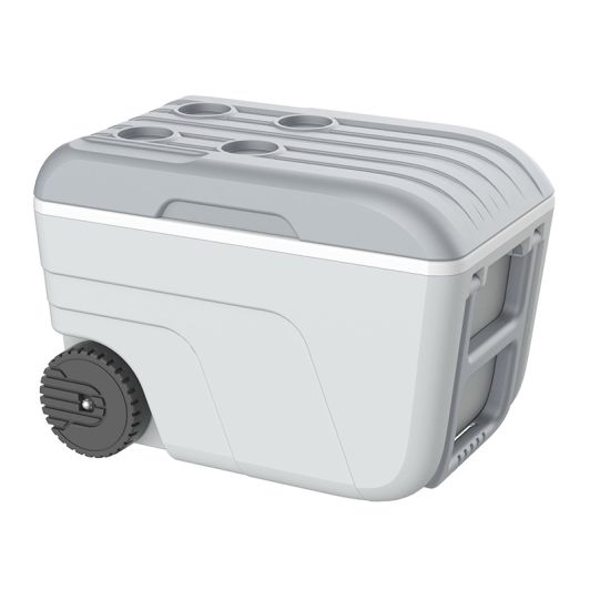 | Caractéristiques complémentaires | Glacière nomade, 52 litres coloris bicolore : gris anthracite / gris béton. - coque extérieure en polypropylène rigide - isolation en polystyrène expansé HD - couvercle moulé par soufflage avec 4 logements pour gobelets - deux grandes roues robustes pour un transport facile - poignée ergonomique rabattable - bouchon de vidange amovible pour évacuer l'eau du récipient - fermeture hermétique - dimensions : (L)59 x (P)36 x (H)42 cm |