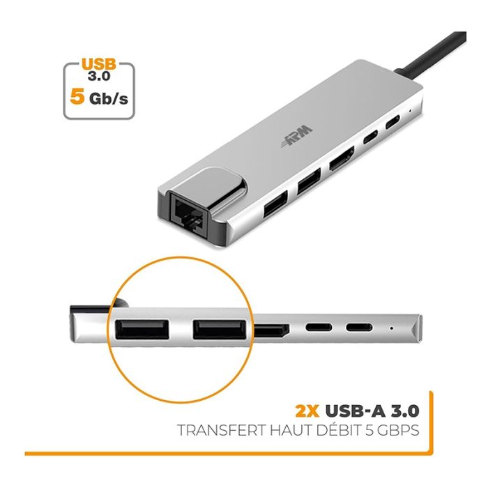 HUB APM USB-C vers USB-A, USB-C, HDMI 4K, RJ45