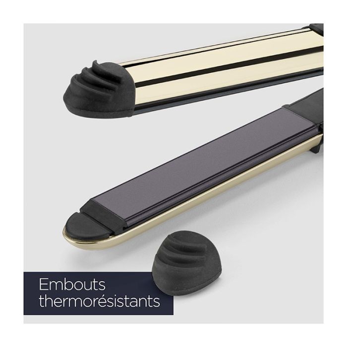 | Caractéristiques complémentaires | LISSEUR PROFESSIONNEL BaByliss BLACK ONYX (ST484E) Appareil 2-en-1 Polyvalent : Conçu pour lisser et boucler tous les types de cheveux grâce à son design spécifique Plaques Haute Performance : Plaques flottantes larges et extra longues de 28 x 120 mm pour une efficacité de lissage maximale Revêtements Avancés : Revêtement intérieur incurvé en céramique Black Onyx et revêtement extérieur incurvé chauffant en acier inoxydable pour faciliter le bouclage Technologie Ionique : Élimine les frisottis pour rendre les cheveux doux et brillants Réglage de la Température : Propose 5 niveaux de température allant de 150°C à 235°C pour s'adapter à chaque nature de cheveux Chauffe Ultra-Rapide : Système Advanced Ceramics™ permettant une chauffe instantanée, l'appareil étant prêt en seulement 15 secondes Sécurité et Confort : Équipé d'embouts isolants pour le bouclage, d'un tapis thermo-résistant et d'une fonction d'arrêt automatique Liberté de Mouvement : Dispose d'un cordon rotatif professionnel d'une longueur de 3 mètres Garantie Étendue : Produit bénéficiant d'une garantie constructeur de 5 ans |