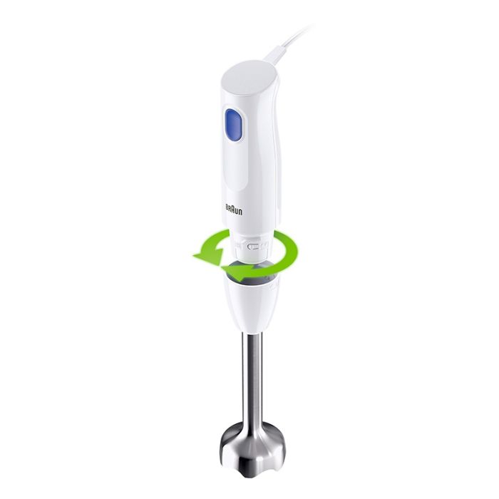 | Caractéristiques complémentaires | Extra léger :Le mixeur plongeant le plus léger de Braun pour effectuer des tâches avec un minimum d'effort.1 vitesse :Facilité d'utilisation en un clicSystème EasyTwist :Changez ou retirez les accessoires de manière simple et rapide.Gobelet :Gobelet en plastique de 600 ml, sans BPA*, avec mesures en ml et fl oz. |