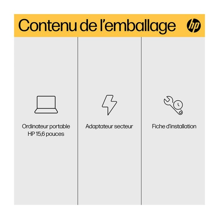 | Caractéristiques complémentaires | Charge rapide HP Fast Charge : Recharge à 50 % en seulement 45 minutesClavier complet : Clavier pleine taille avec pavé numérique intégréAudio et webcam : Doubles haut-parleurs, caméra HP True Vision HD 720p avec réduction du bruit |