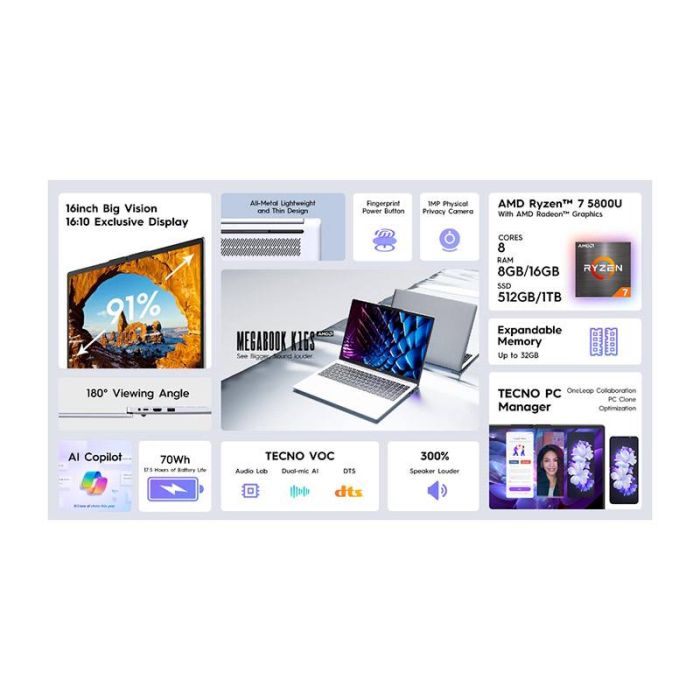 PC Portable 15,6" TECNO K15SDA - R7/32Go/1To