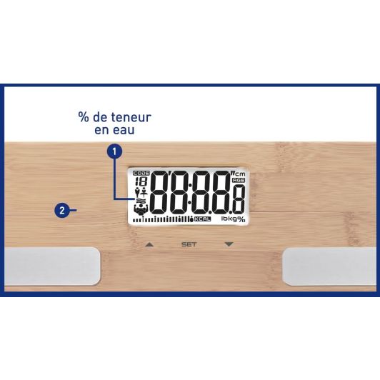 Permet une très bonne estimation de la masse graisseuse et musculaire présentes dans le corps.Un allié de choix lors d’un régime ou d’une prise de masse musculaire.Affichage