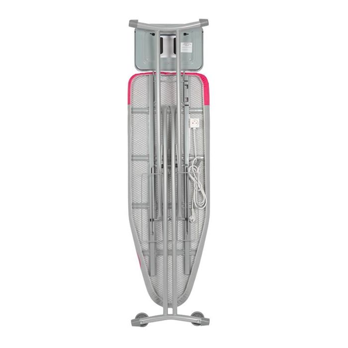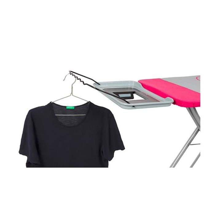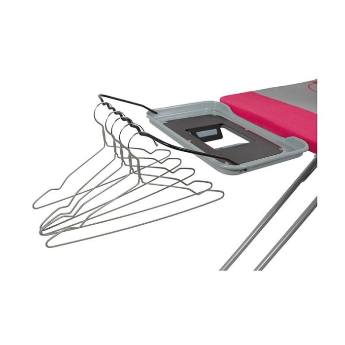 | Caractéristiques complémentaires | Table à repasser pour usage fréquent- Plateau repose centrale vapeur- Porte cintres- Housse de première monte en 300 gr/mm²- Déplacement facilité grâce aux deux roulettes- Rallonge électrique 2m50- Hauteur réglable de 60 à 90 cm |