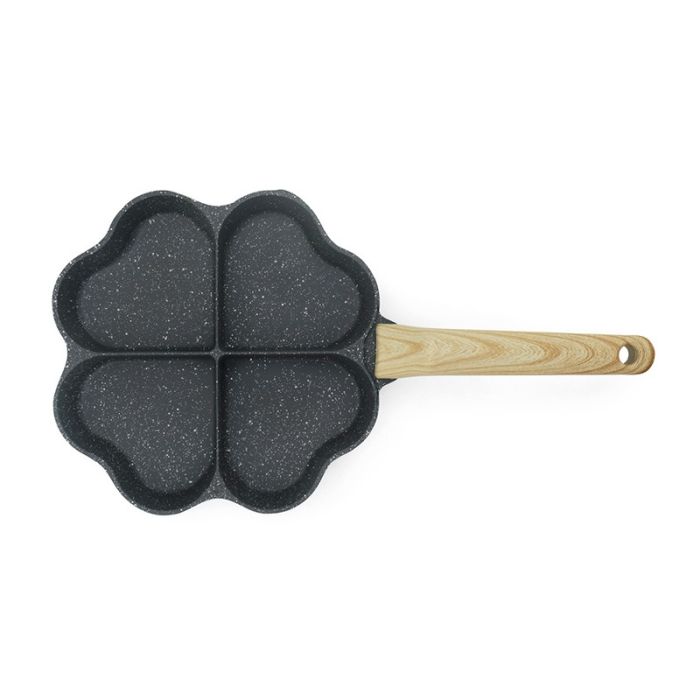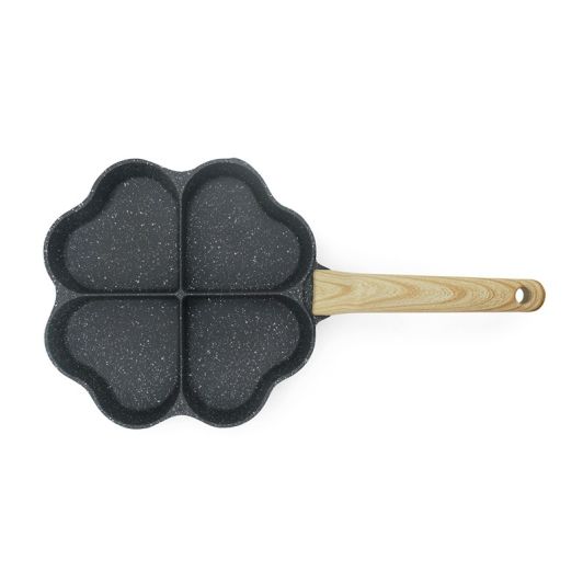 | Caractéristiques complémentaires | Cette poêle dotée de 4 cavités en forme de coeurs sera parfaite pour cuire toutes sortes de préparation simultanément (pancakes, blinis, oeufs, viandes...) et ainsi varier les plaisir tout en gagnant du temps. La poêle convient pour tout type de feu. Grâce à sa fonte en aluminium, la chaleur se diffuse bien, les aliments ne collent pas ce qui permet un nettoyage facile Poignée revêtue silicone effet bois Diamètre des cavités : 8 cm |