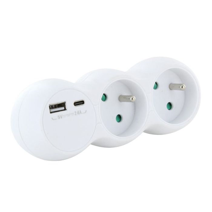 | Caractéristiques complémentaires | Utilisation en intérieur2 prises 16A, 1 USB-1, 1 USB-CPuissance Max: 3680WUSB Output: 5V-12W |