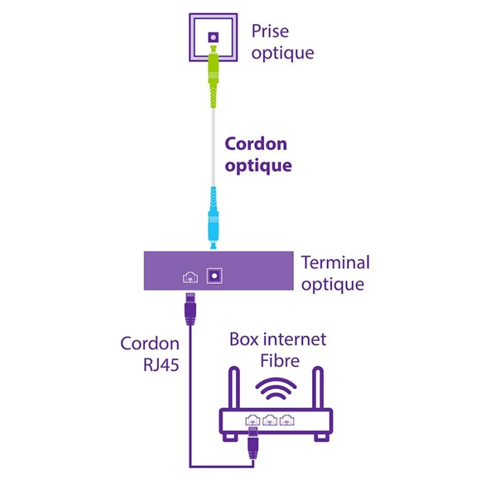 | Caractéristiques complémentaires | - Jarretière fibre optique monomode SX de diamètre 3 mm- Spécial cordon d'abonné FTTH et box fibre Internet- Perte d’insertion : < 0,3 dB- Réflectance : > 50 dB- Connecteurs : SC/UPC-SC/APC// COMPATIBLE FREE |