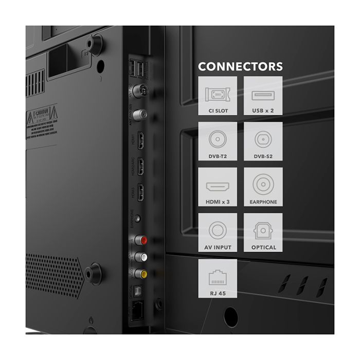 Les 3 ports HDMI vous permettent de relier différents appareils à votre TV et de transmettre une image et un son en haute définition.Smart TV