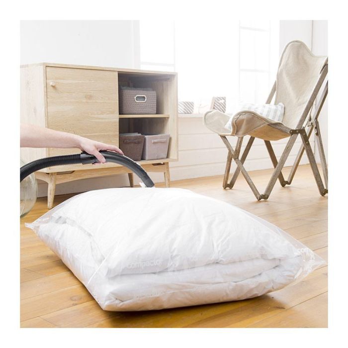 | Caractéristiques complémentaires | Lot de 3 housses de rangement sous vide Compactor Aspispace2 taille M et 1 taille LPetit modèle (x2) : L. 55 x H. 90 cm Grand modèle (x1) : L. 80 x H. 100 cm75 % de gain de place dans vos placards. |