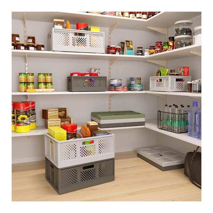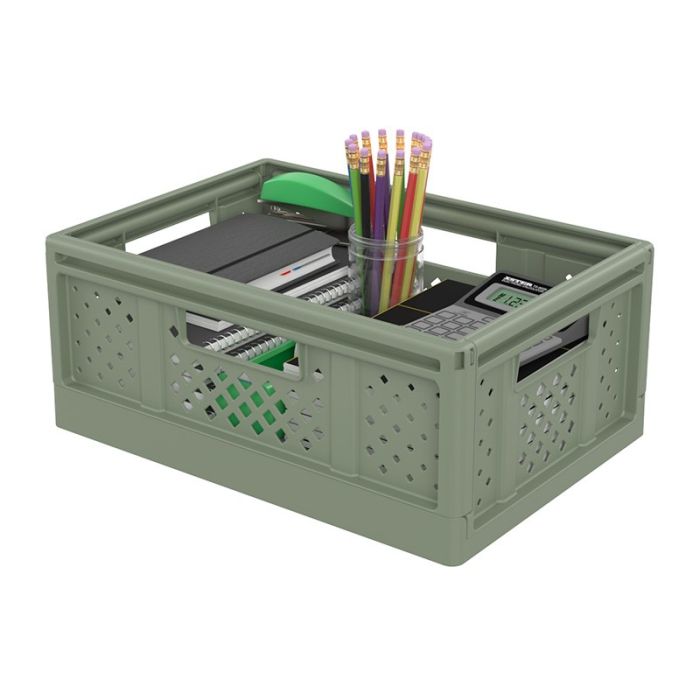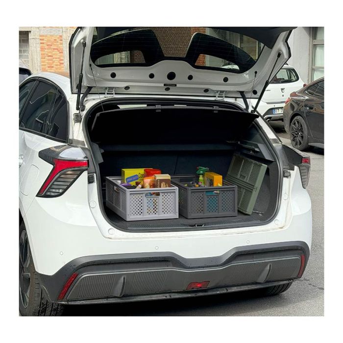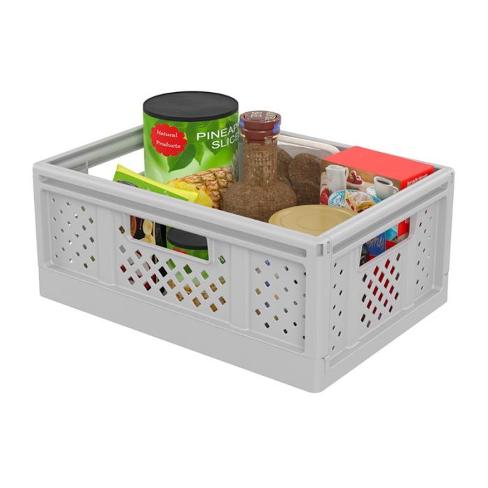 | Caractéristiques complémentaires | - 4 poignées ergonomiques - Design ajouré pour faciliter la circulation de l'air - Résistance jusqu'à +/- 20 kg - Bonne stabilité en superposition - Possiblité de combiner les deux tailles 14 L ET 40 L 3 coloris au choix en magasin : gris, blanc cassé, vert sauge Fabriqué à partir de plastique recyclé à 95% Dimensions replié : 54,6 x 38,6 x 4 cm Dimensions deplié : 54,6 x 38,6 x 22 cm |