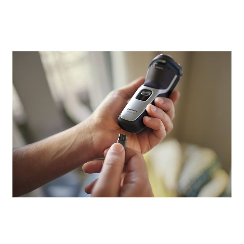 Grâce au rasoir électrique 100 % étanche Series 3000 de Philips, obtenez un rasage net et confortable, même sur peau sensible. Les têtes 5D Pivot & Flex, les 27 lames PowerCut auto-affûtées et l’utilisation sur peau sèche ou humide assurent des résultats excellents et fiables à chaque rasage.