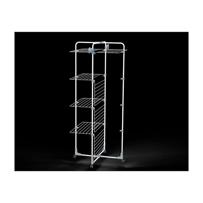 | Caractéristiques complémentaires | Séchoir tour grande capacité 4 niveaux Utilisable en demi ouverture pour étendre des petites lessives 4 roulettes multi directionnelles pour un déplacement facile 2 supports cintres extérieurs |
