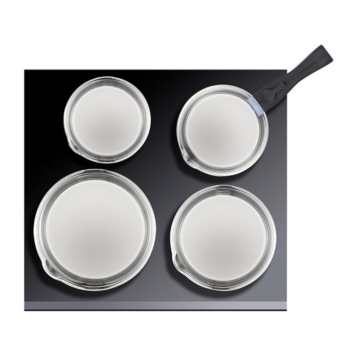 | Caractéristiques complémentaires | Set de 4 casseroles inox, intérieur satiné mat, graduations intérieures, becs verseur, fond capsulé.Poignée amovible (ne pas mettre au lave vaisselle)Diamètres : 14 16 18 et 20 cmUtilisation sur tous types de feux dont induction. |