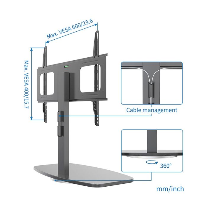 Permet d’orienter la TV de 360° vers la gauche ou vers la droite50 Kg