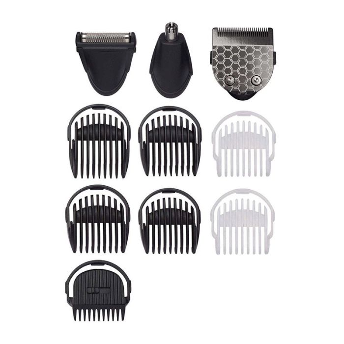 | Caractéristiques complémentaires | COUPE PRECISE ET PERFORMANCES DURABLESKIT PRECISION+ : VISAGE ET CORPS- Tondeuse 34mm avec : 1 guide de coupe ajustable barbe de 3 jours (1-3,5mm) 4 guides de coupe barbe (5, 6, 7 et 8mm) 2 guides de coupe corps (3 et 4mm)- Rasoir de précision pour des finitions parfaites- Tondeuse nez/oreillesPERFORMANCE ET CONFORT D'UTILISATION- Précision de tonte et robustesse : lames 34mm en Carbone Titane- Maniabilité renforcée : design incliné- Plus de liberté : utilisation sans fil- Autonomie 60min |