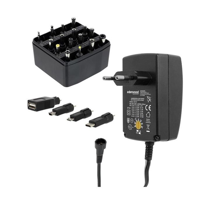 Alimentation EDENWOOD universelle 3 à 12V - 27W USB-C + 20 connecteurs