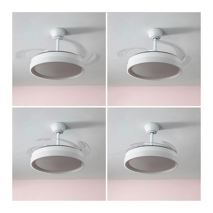 | Caractéristiques complémentaires | Le ventilateur de plafond est un système efficace qui procure une agréable sensation de fraîcheur et cela de manière saine. Avec son moteur DC, ce ventilateur est très silencieux. Les pâles sont rétractables ce qui sera un véritable avantage pour le design de votre intérieur. Il est fourni avec une télécommande qui vous permettra de régler les 6 vitesses différentes pour un usage optimal. (nécessite deux piles AAA non fournies). Il est équipé de LED pour lesquelles vous pourrez sélectionner 3 modes d'éclairage en fonction de vos préférences. |