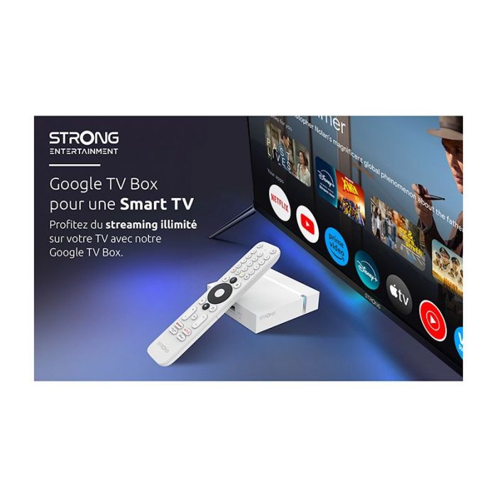 | Beschrijving markering | Geef je tv een nieuw leven met de Google TV smartbox!De STRONG LEAP-S3+V2 transformeert je tv in een smart-tv met directe toegang tot de Google Play Store. Hij draait op Android 11 en biedt naadloze toegang tot apps, streamingdiensten en meer, waaronder Netflix, YouTube, Prime Video en Disney+*. De innovatieve afstandsbediening met numerieke toetsen is perfect voor het selecteren van IPTV-kanalen. Geniet van een verbluffende 4K UHD-resolutie, H.265-decodering, dualband wifi 5 en Google Cast-functionaliteit. Dolby Vision-Atmos garandeert een verbluffende beeld- en geluidskwaliteit. Met Google Assistent bedien je het afspelen of zoek je naar content met spraakopdrachten. USB, Bluetooth 5.0, HDMI 2.1 en een ethernetpoort maken deze uitzonderlijke entertainmenthub compleet. - Videoresolutie tot 4K UHD- Quad-core Cortex-A35, 2,0 GHz- Eenvoudig downloaden en installeren van apps uit de Play Store- Toegang tot apps, games, streamingdiensten en meer via Google Play- Ondersteuning voor Dolby Vision en Dolby Atmos |