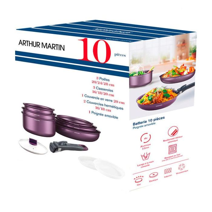 | Aanvullende kenmerken | Verwijderbare set van 10 stuks batterij:- 3 pannen 20 24 28 cm- 3 kookpotten 16 18 20 cm- 1 verwijderbaar handvat- 1 glazen deksel 20 cm- 2 luchtdichte deksels 16 18 cmGeschikt voor alle warmtebronnen, inclusief inductieVoordelen van de keramische coating:- gezonder koken- betere warmtegeleiding- milieuvriendelijk- gemakkelijk schoon te maken- duurzaamheid |