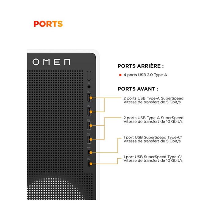 | Aanvullende kenmerken | Ga elke game en taak aan met prestaties die ontworpen zijn voor alles wat wordt aangedreven door Intel Core Ultra-processors. Verbeterde prestaties voor gaming en productiviteit met verbeterde koeling, stillere werking en hogere snelheden dankzij Intel Core Ultra-processors.1 TB PCIe Gen4 NVMe M.2 SSD Dankzij de zeer hoge gegevensoverdracht biedt de 1 TB PCIe Gen4 NVMe M.2 SSD razendsnelle snelheid en efficiënte opslag.DTS: X Ultra-technologie Deze technologie produceert authentiek 3D-geluid en nauwkeurige ruimtelijke positionering voor elke koptelefoon, met audio-modi aangepast aan elk type game, voor een totale onderdompeling en de beste entertainmentervaring.USB Type-C-poort, overdrachtssnelheid van 10 Gbit/s Sluit je externe opslag aan via deze USB Type-C-poort, die een overdrachtssnelheid van 10 Gbit/s biedt. Bovendien is hij omkeerbaar en eenvoudig aan te sluiten, zodat je hem aan beide kanten kunt inpluggen.Dual-channel geheugen De dual-channel technologie verbetert de systeemprestaties door gelijktijdige werking van beide kanalen, wat de communicatiesnelheid tussen de geheugencontroller en het RAM verdubbelt.OMEN Gaming Hub OMEN Gaming Hub is de centrale plek om je game-ervaring te verbeteren. Van software-upgrades tot hardwarebesturing en live services, OMEN Gaming Hub tilt je game-ervaring moeiteloos naar een hoger niveau. |