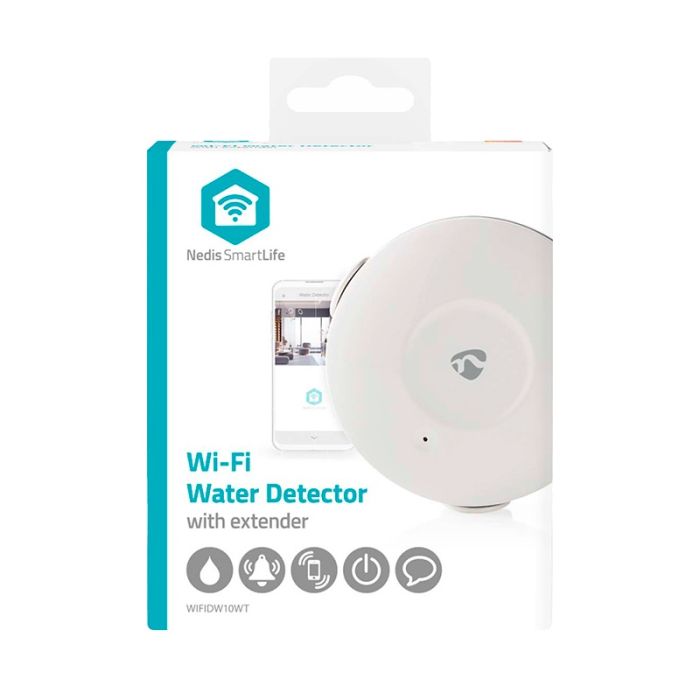 | Aanvullende kenmerken | NEDIS wifi waterlekkagedetector:- Verbind de NEDIS rookmelder met uw 2.4 GHz wifi-netwerk via de Nedis Smartlife-app (Tuya-compatibel)- Ontvang een waarschuwing op uw smartphone wanneer u afwezig bent- De detector wordt gevoed door twee batterijen CR123A + CR2 (inbegrepen)- Maximale batterijduur: 2 jaar- Transmissiefrequentiebereik: 2400-2485 MHz- Werktemperatuurbereik: 0-40°C- Geluidsniveau 50dB |