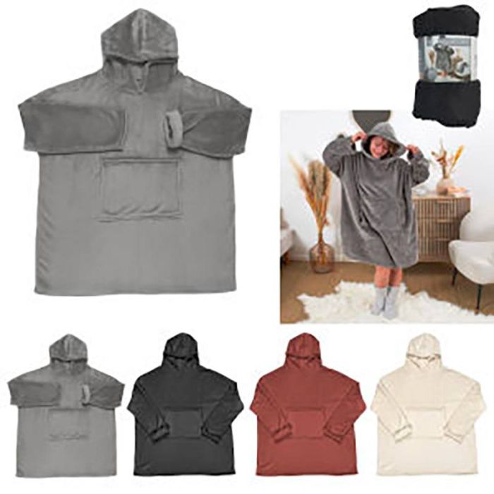 | Aanvullende kenmerken | Één maat: 118 x 85 cm Los en comfortabel Capuchon en voorzak om de handen lekker warm te houden Samenstelling: 100% polyester Kleuren naar keuze in de winkel. Willekeurig bij verzending op afstand |
