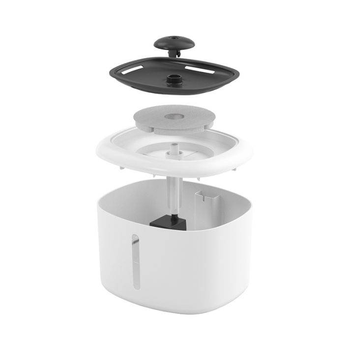 | Aanvullende kenmerken | Drinkfontein voor katten en kleine honden- Inhoud 2,5 liter- Garandeert gezond, schoon en gefilterd zuurstofrijk water- Waterniveau-indicator- Zeer stil (minder dan 30 dB)- Vervangbaar actiefkoolfilter (1 filter meegeleverd bij de fontein)- Snelle start en eenvoudig gebruik- Automatische uitschakeling bij een te laag waterniveau- Voeding via USB-kabel (USB-adapter meegeleverd)- Pompspanning: 5 V - Nominaal vermogen: 0,25 W* Gebruiksaanwijzing: Maak de fontein één keer per week schoon. Vervang het filter één keer per maand (filter verkrijgbaar op deze website) |
