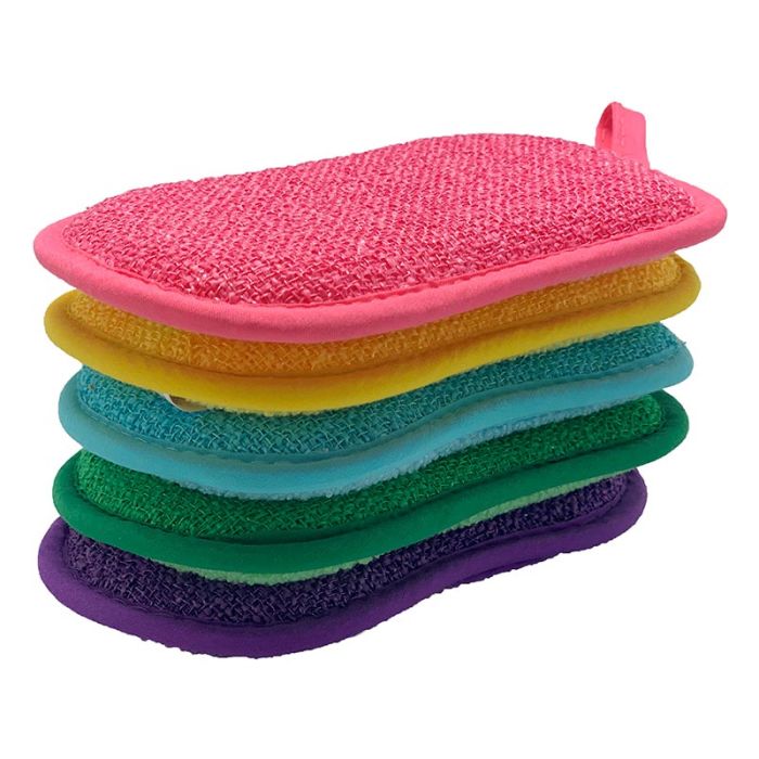 | Aanvullende kenmerken | Wasbare en herbruikbare allesreinigende sponzen: Set van 5 sponzen in verschillende kleuren. Voor elk gebruik een andere kleur.Dubbelzijdig: Eén kant spons en één kant schraper, een niet-corrosieve spons om moeiteloos vuil te verwijderen. Een herbruikbare spons die in de wasmachine gewassen kan worden. Milieuvriendelijk.Krasvrij: Een krasvrije spons, geschikt voor het reinigen van alle soorten oppervlakken.Schuimend: Deze sponzen schuimen snel, wat zorgt voor comfort tijdens het afwassen en/of schoonmaken.Gemakkelijk in gebruik: Deze sponzen zijn zeer flexibel, waardoor ze zich aanpassen aan elk type recipiënt en oppervlak om ook in verborgen hoekjes te komen.De allesreinigende sponzen worden je beste schoonmaakhulpjes. |
