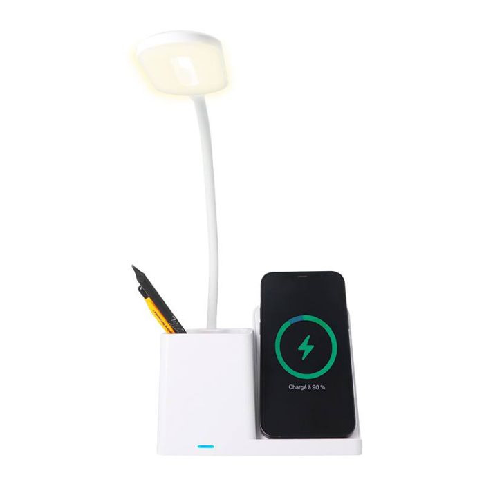 Rated 3 van de 5 door LoloDes uit Pratique et nécessite un rework La lampe de bureau SEDEA avec support de charge est un objet plutôt pratique quand on possède un bureau avec peu d'espace. Trois fonctionnalité le comprennent, à savoir : La lampe (Avec 3 effet de luminosité, couleur chaud/froid/mixte), le support téléphone pour le charger de manière wireless et pour finir la boite à crayon. Pour les observations : - J'ai remarqué qu'il peut faire du bruit lorsqu'il charge le téléphone (iPhone pour ma part). Pour info, je ne sais pas si c'est normal ou non. Nécessite peut être un signalement pour retravailler cet inconvénient, ou rassurer les consommateur en expliquant que c'est un bruit par défaut. - Qualité de la bande support pour poser son portable est à revoir, il n'est pas anti-dérapant. La matière est du plastique dur, risque que le portable glisse en cas de mauvaise manipulation. Il est peut être nécessaire de retravailler ce point là. - La vitesse de charge est très lente, c'est à retravailler. - On peut manipuler la tête de lampe assez facilement pour régler l'inclinaison, c'est qui agréable. La matière correspond au type de manoeuvre. Sans oublier le bouton tactile qui est efficace, la sensibilité est bonne. Rien à dire, c'est top ! - Le témoin de charge est très pratique pour connaitre l'état de charge du dispositif. Très bonne idée. - Pour finir, même si c'est indiqué sur le boitier, il serait intéressant de rajouter un chargeur en plus. J'espère que cet avis vous aura permis d'avoir un résumé objectif du produit.